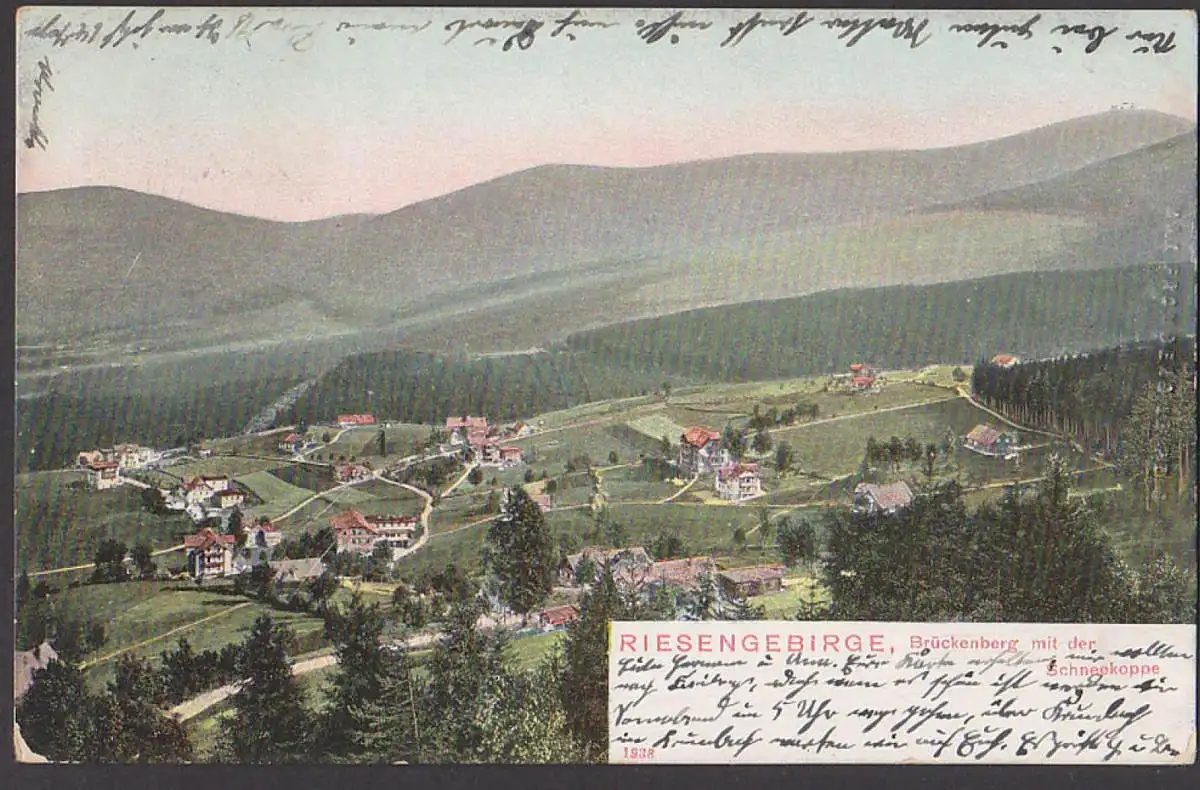 Sněžka Brückenberg Riesengebirge Schneekoppe Śnieżka Sudeten colorierte AK 1908