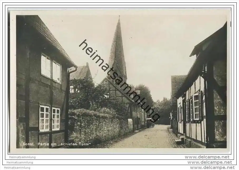 Soest - Partie am schiefen Turm - Foto-AK (G24277) *