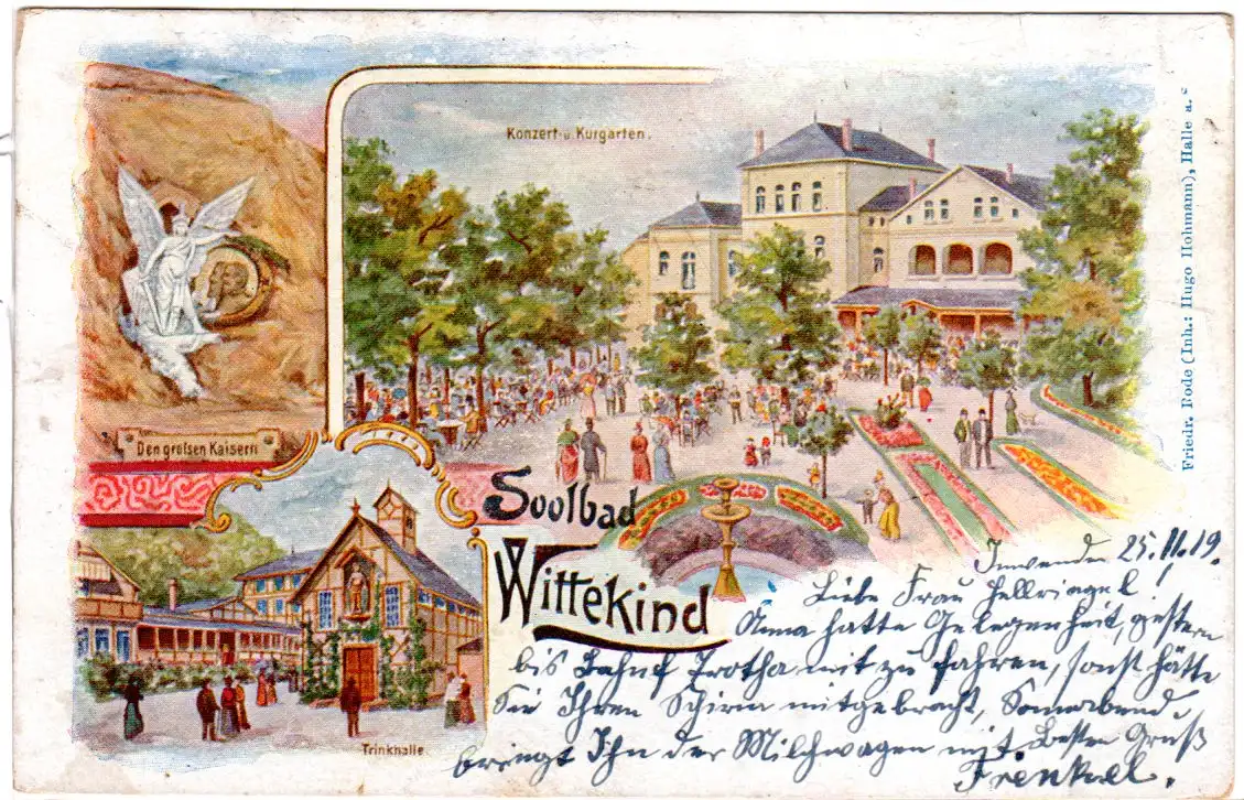 Solbad Wittekind m. Konzert- u. Kurgarten, 1919 gebr. Litho-AK