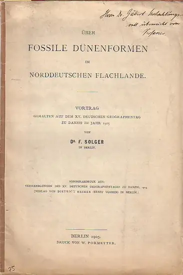 Solger, F: Über fossile Dünenformen im norddeutschen Flachlande. Vortrag gehalten auf dem XV. Deutschen Geographentag zu Danzig im Jahre 1905. Sonderabdruck aus Verhandlungen des Geographentages 1905.
