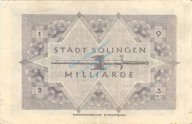 Solingen , Banknote 1 Milliarde Mark Schein in gbr. Keller 4809.q , Rheinland 1923 Inflation