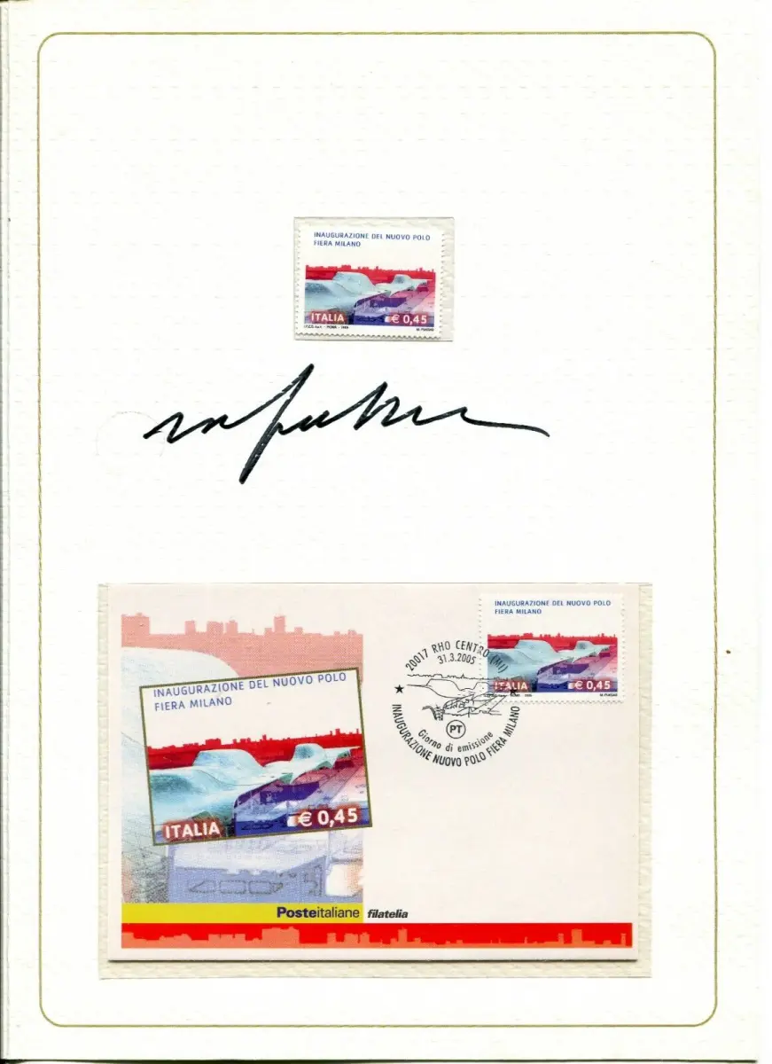 Folder Großveranstaltungen zur Eröffnung des neuen Poloshirts der Messe Mailand mit Autogrammsignatur von Fuksas in eleganter Hartschalenhülle Fiera Milano - Let's celebrate! 31. März 2005 - Sehr wenige Exemplare vorhanden, vermutlich als Hommage an Persönlichkeit - RAR