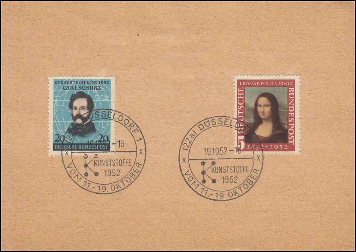 Sonderstempel DÜSSELDORF Kunststoffe 1952 vom Letzttag 19.10.1952