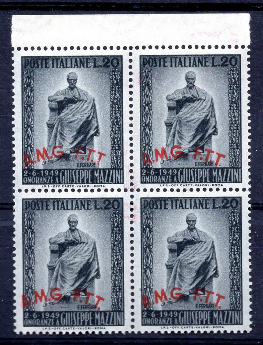 Sortensträuße nach links verschoben ** MNH - Mazzini Nr. 47. Viertel mit nach links verschobenem Aufdruck und einem Exemplar ohne Punkt nach dem G (Position. 34) - Ungewöhnlich für Fachmann Nr. 1014/20