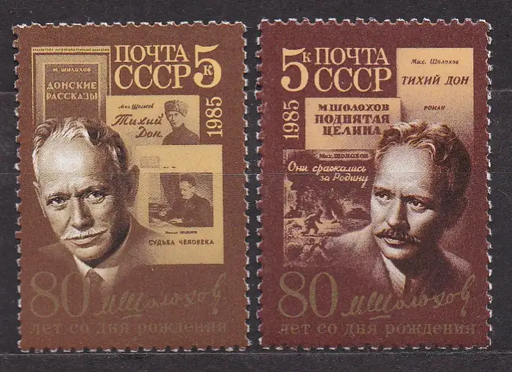 Sowjetunion, Mi-Nr. 5509 + 5510 **, 80. Geburtstag von Michail A. Scholochov