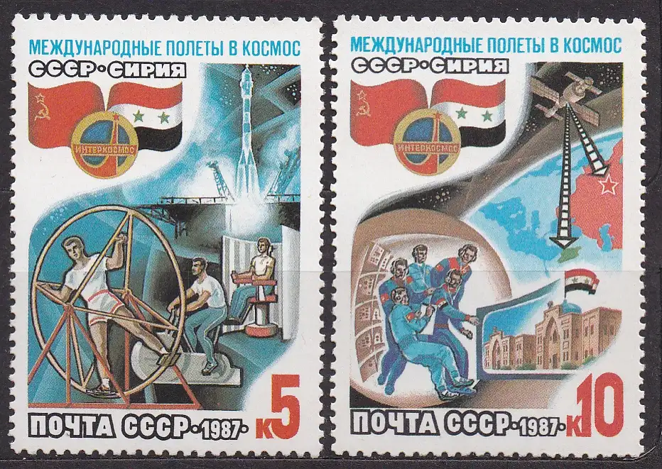 Sowjetunion, Mi-Nr. 5737 + 5738 **, Gemeinsame Weltraumforschung UdSSR - Syrien
