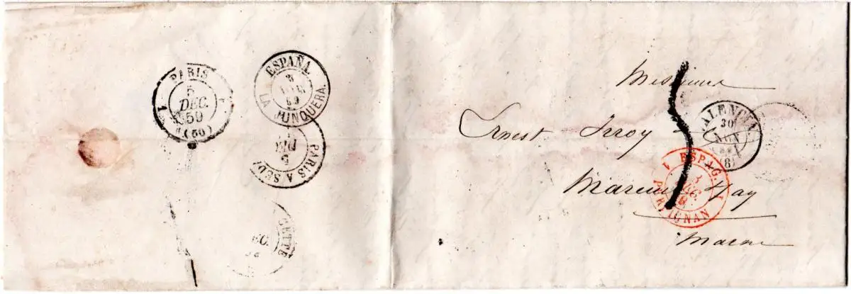 Faltbrief m. kpl. Inhalt u. diversen Stempeln, u.a. ESPAG. 1 PERPIGNAN