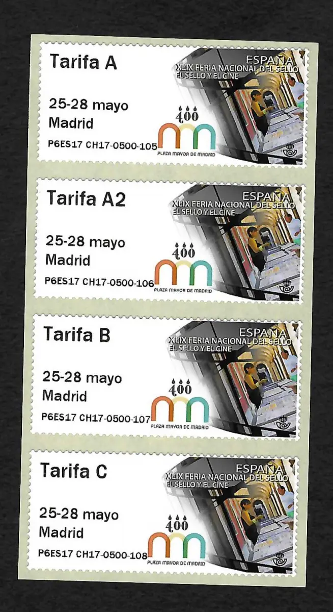 Spanien 2017: Briefmarkenausstellung FERIA EL SELLO EL CINE, 4x Marken,**