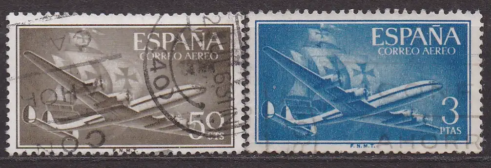 Spanien, Mi-Nr. 1074 + 1076 gest., Flugzeug vor Karavelle