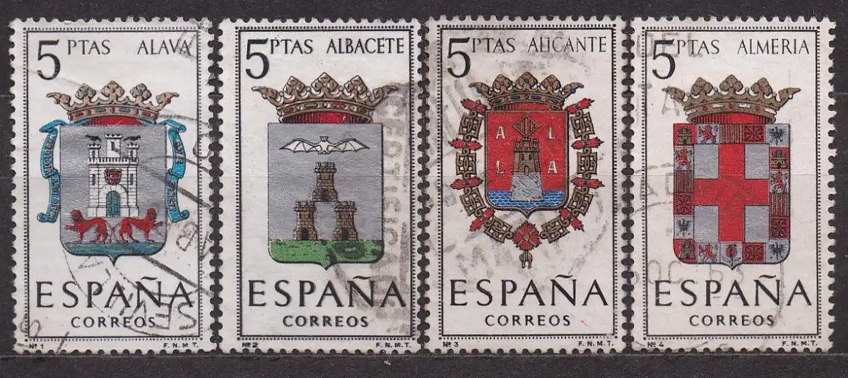 Spanien, Mi-Nr. 1301, 1302, 1303 + 1317 gest., Wappen der Provinzen