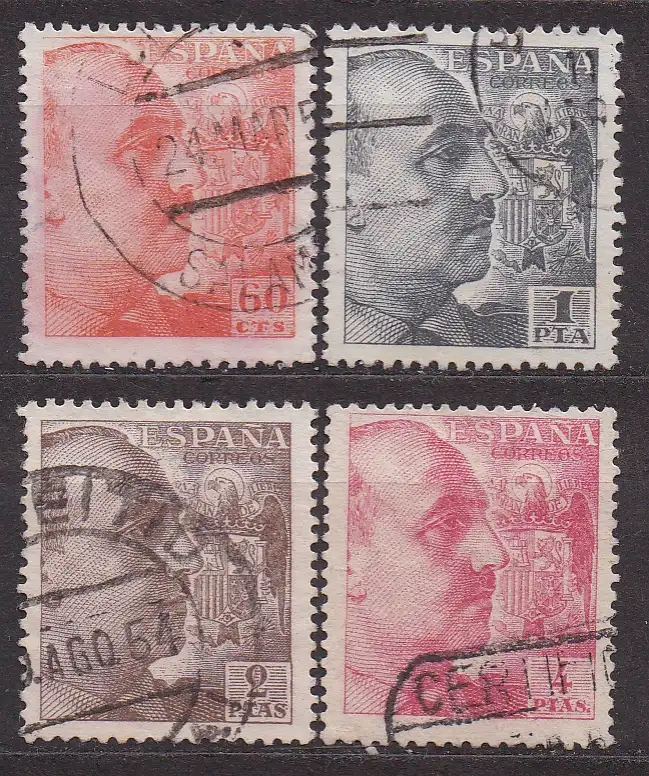 Spanien, Mi-Nr. 850 C, 852 C, 854 C + 855 C gest., General Franco
