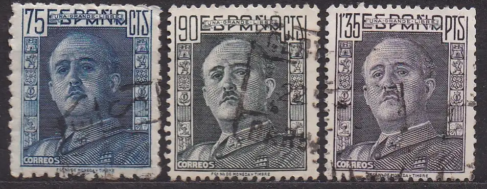 Spanien, Mi-Nr. 935 A, 936 B + 937 B gest., General Franco