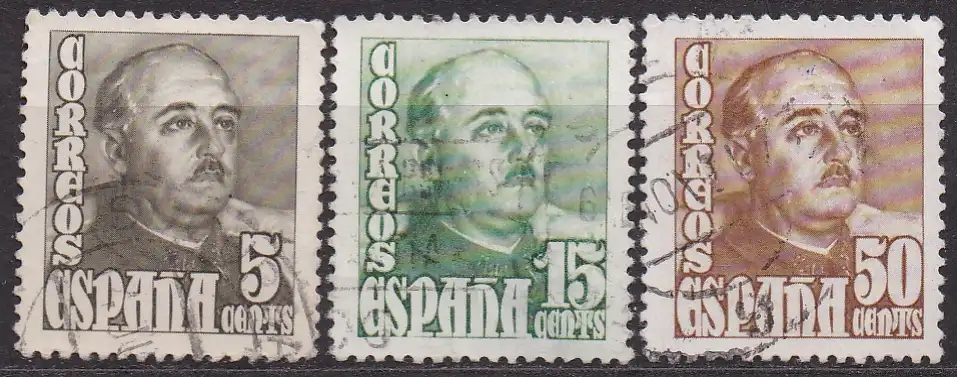 Spanien, Mi-Nr. 950, 951 + 952 gest., General Franco