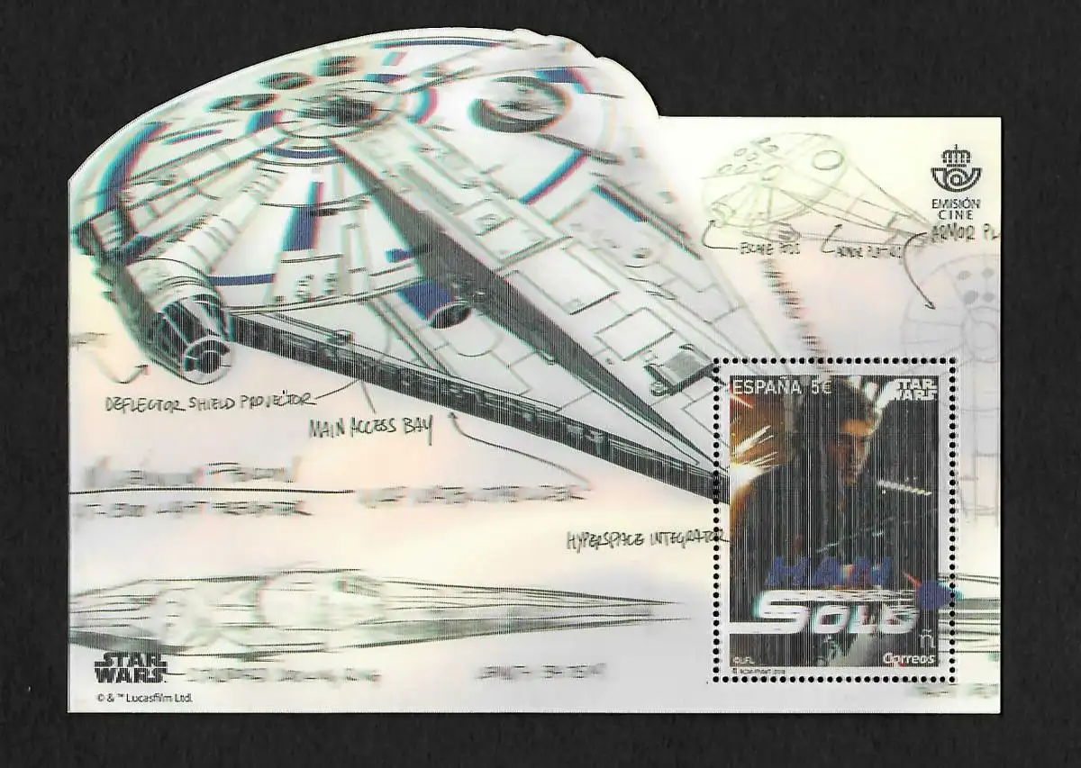 Spanien: Star Wars - Han Solo: 3D Block auf dickem Papier, postfrisch