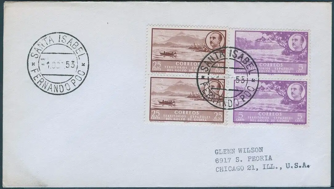 Brief mit Mischfrankatur "Vulkan/Landschaften" aus Santa Isabel/Fernando Poo