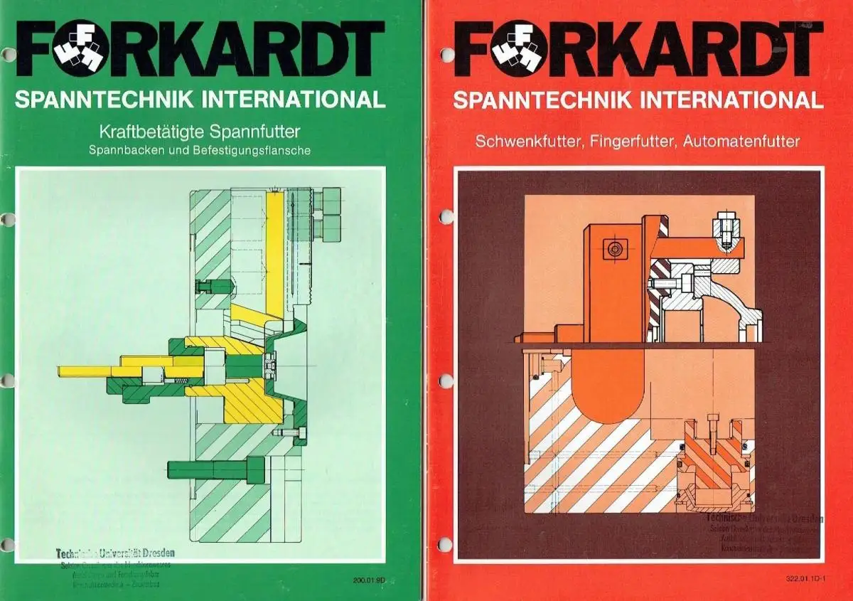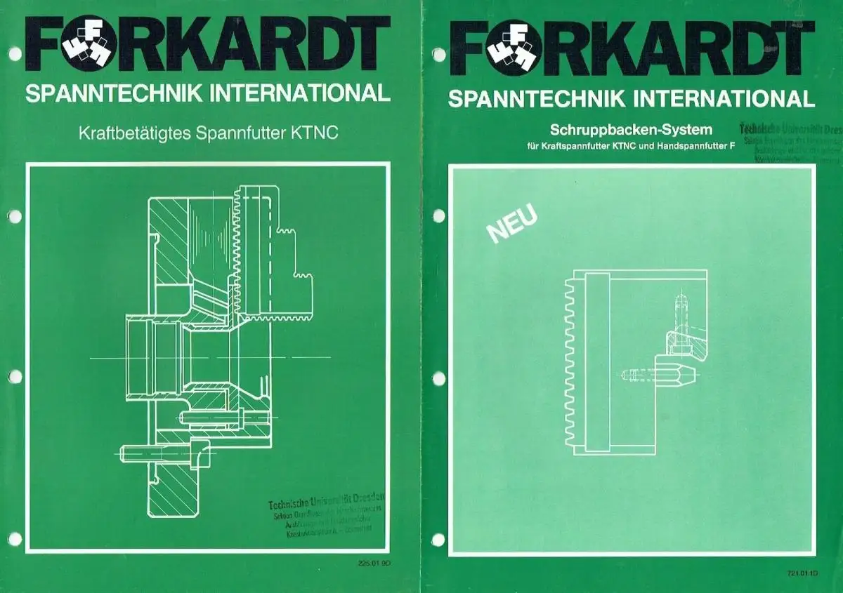 guter bis sehr guter Zustand, geringe Gebrauchs- und Alterungsspuren: gelocht - teils mit Stempel vorn oder hinten - ein Heft etwas eselsohrig, Spanndorne und Spannzangen (23 Seiten) - Spannbacken für Hand- und Kraftspannfutter (23 Seiten, 1979) - Schwenkfutter, Fingerfutter, Automatenfutter (19 Seiten) - Kraftbetätigte Spannfutter, Spannbacken und Befestigungsflansche (59 Seiten) - Schruppbacken-System für Kraftspannfutter KTNC und Handspannfutter F (5 Seiten) - Kraftbetätigtes Spannfutter KTNC (7 Seiten), Softcover, ca. 21 x 29,5, 136 Seiten mit zahlreichen Bildern
