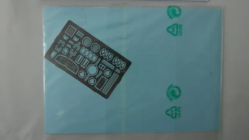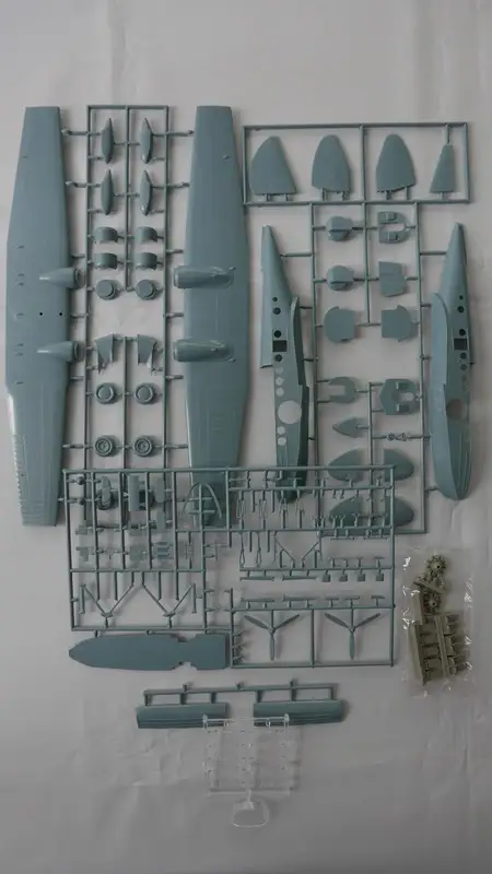 Einzelteile (Plastikbauteile) sind noch am Rahmen fixiert, Sichthülle wurde geöffnet.