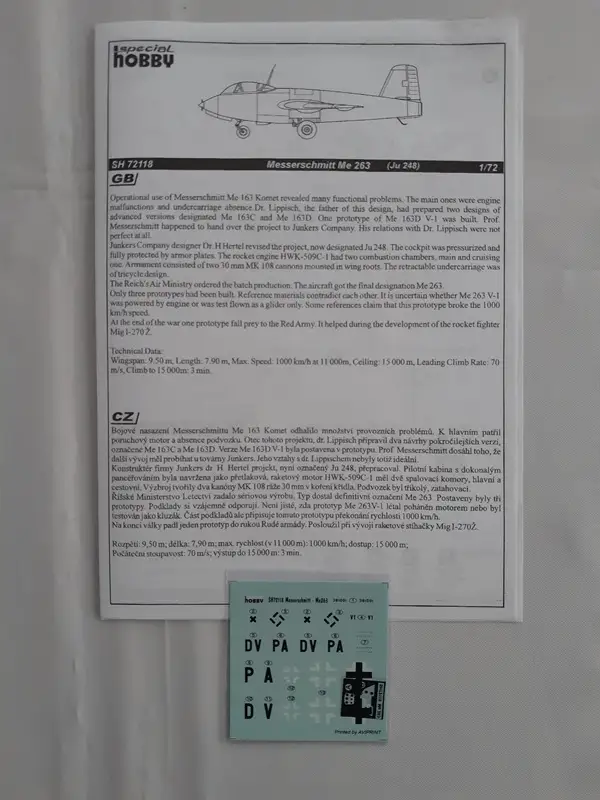 Special Hobby Messerschmitt Me 263 V-1 "German Rocket Fighter"-1:72-SH72118-Modellflieger-OVP-1112