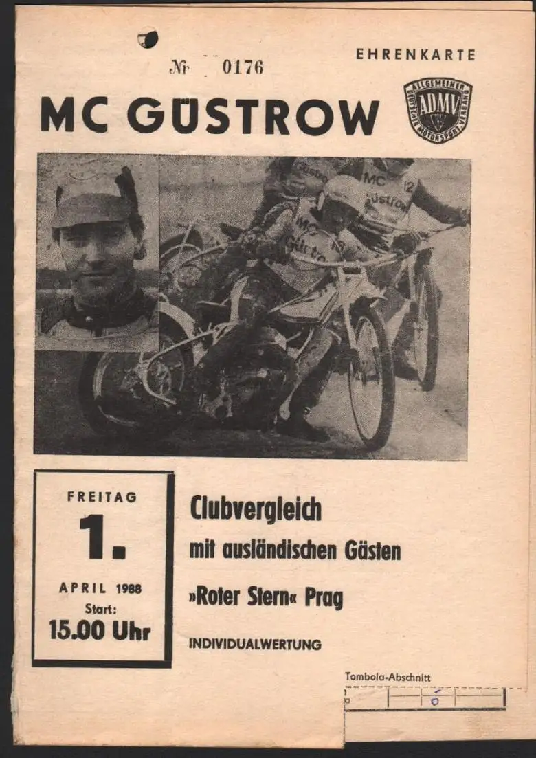 Speedway Güstrow 1.04.1988 , Prag , Programmheft , Programm , Rennprogramm !!!