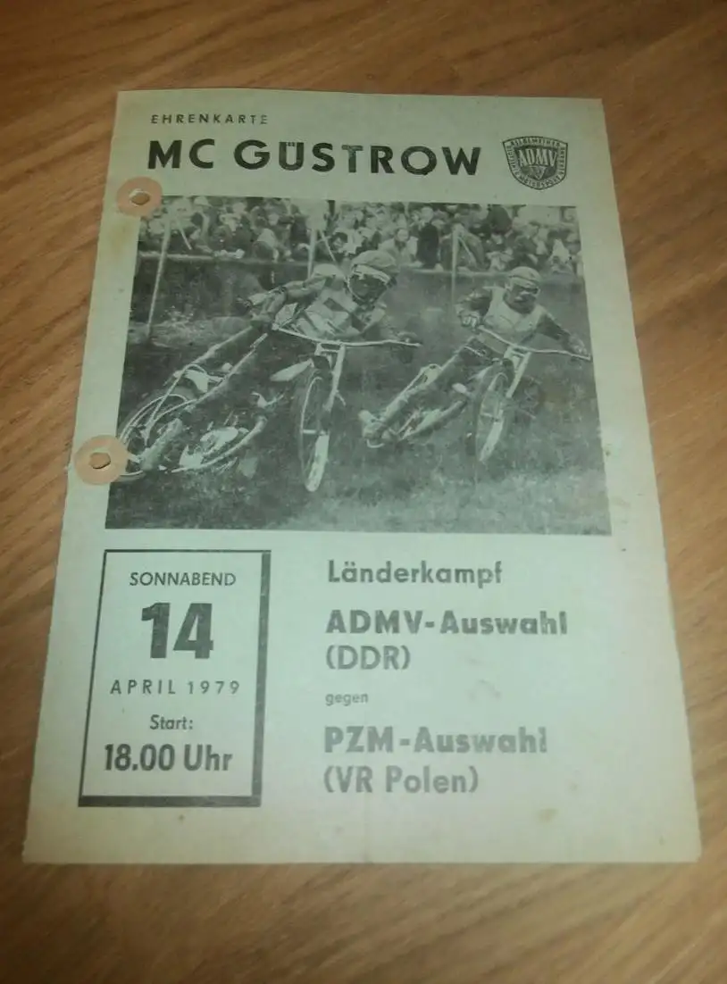 Speedway Güstrow 14.04.1979 , DDR - Polen , Programmheft / Programm / Rennprogramm , program !!!
