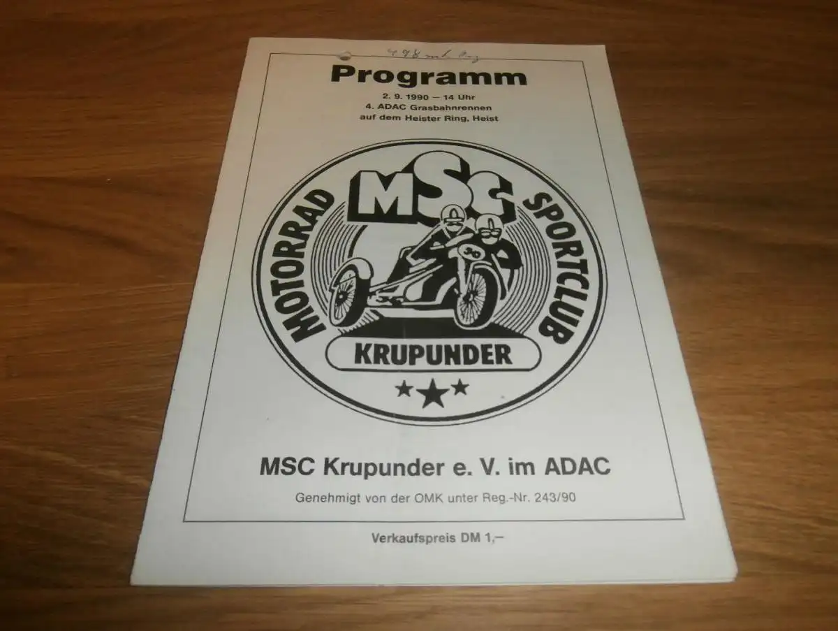 Speedway Krupunder , 2.9.1990 , Heist , Programmheft / Programm / Rennprogramm , program !!!
