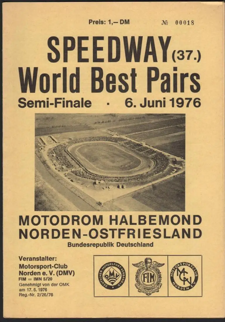 Speedway , Norden WM 6.06.1976 , Rennprogramm , Rennprogramm , program