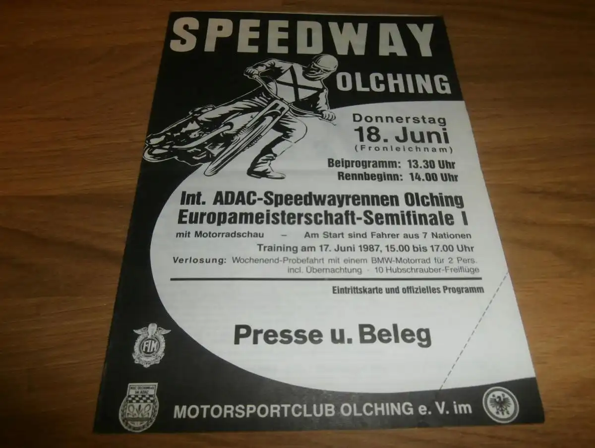 Speedway Olching 18.06.1987 , EM , Programmheft / Programm / Rennprogramm , program !!!