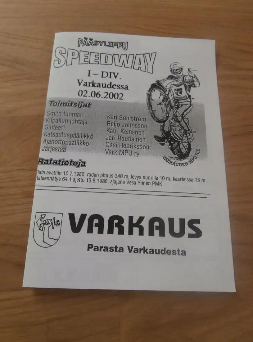 Speedway Varkaudessa / Finnland , 2.6.2002 , Programmheft / Programm / Rennprogramm , program !!!
