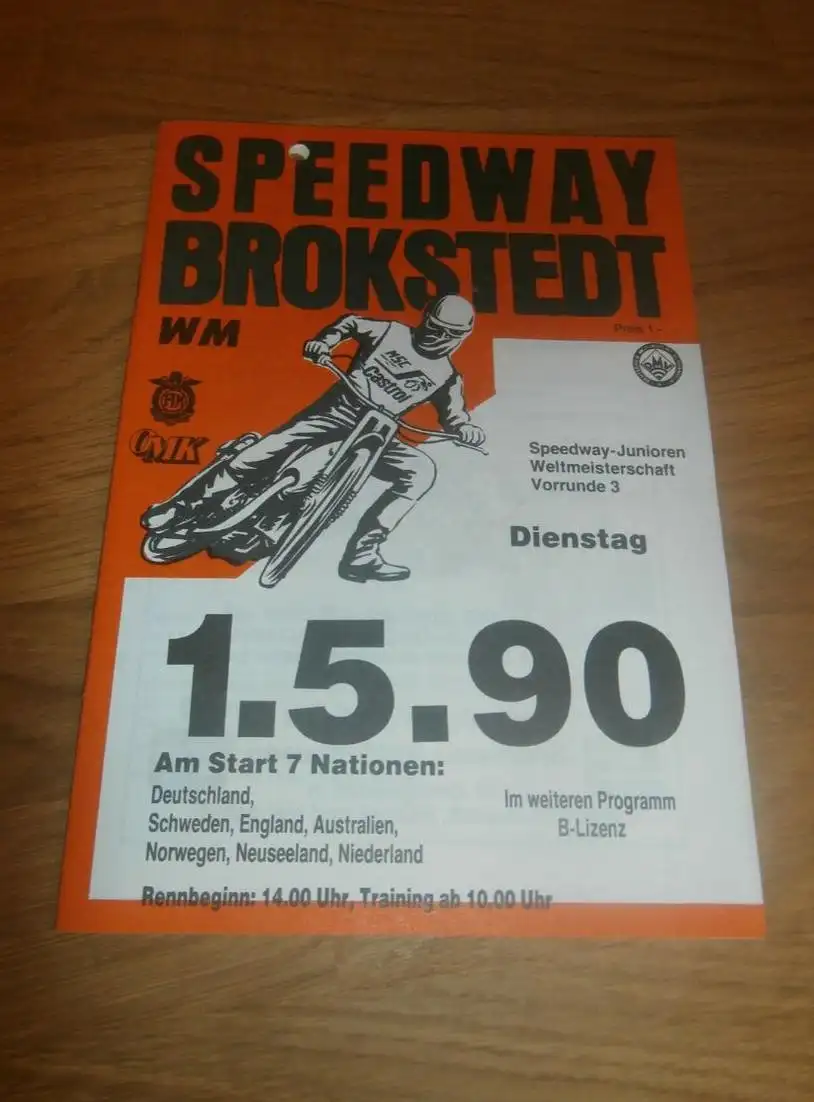 Speedway WM Brokstedt , 1.5.1990 , Programmheft / Programm / Rennprogramm , program !!!