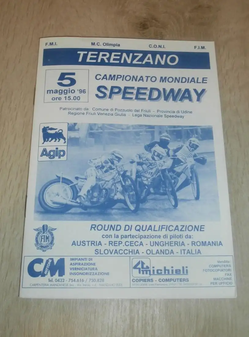 Speedway WM Terenzano 5.05.1996 , Programmheft / Programm / Rennprogramm , program !!!