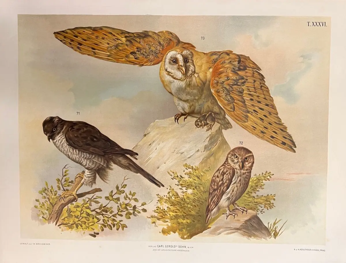 Bemerkungen: Eine von Hartingers Wandtafeln (Nr. XXXVI) für den naturgeschichtlichen Anschauungsunterricht die ab 1880 in dem Wiener Verlag Gerold`s Sohn heraugebracht wurden. "Bis 1892 erschienen 105 Tafeln in drei Abteilungen: I. Zoologie - II. Botanik - III. Bäume. Die Tafeln sind in Chromolithographie gedruckt. dabei wurden oft bis zu 8 oder 10 Farben verwendet". (vgl. F. C. Heller ausführl. im Katalog 34 des Antiquariats Löcker, ca. 1985) Theodor Breidwiser (auch Breidwieser oder Breitwieser, 1847-1930) arbeitete auch als Genre- und Militärmaler.