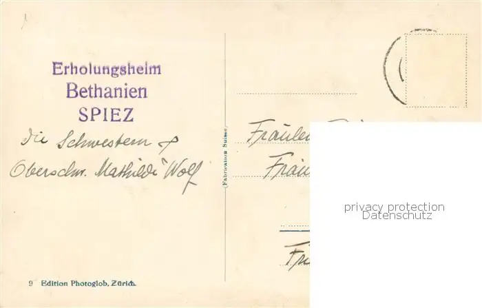 Spiez_Thunersee_BE Erholungshem Bethanien Spiez_Thunersee_BE postalisch gelaufen 1921-1965 Erhaltung siehe scans [FriedD77] Frierer