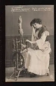 Spinn, spinn! Mägdlein spann die Träne rann. - Gelaufen. 1911. (Nähmaschinen, Nähen, Weben, Spinnen).