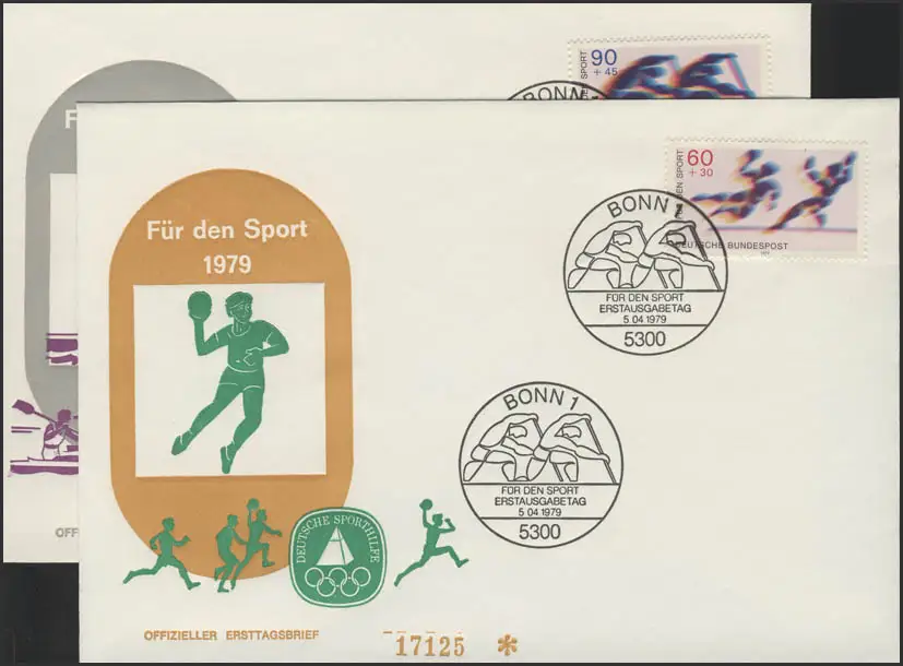 Sporthilfe 1009-1010 zwei offizielle FDCs Handball Rudern ESSt Bonn 1979