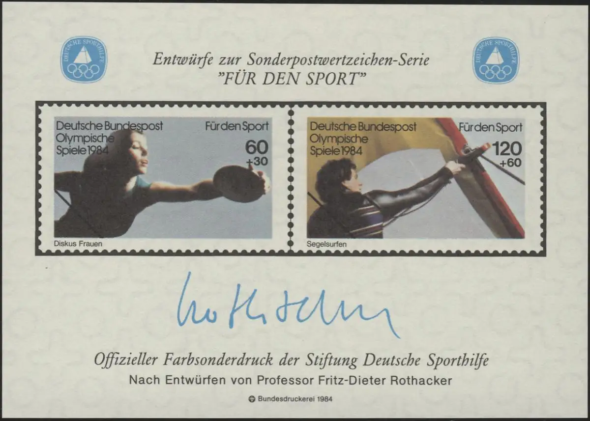 Sporthilfe Sonderdruck Entwerfer Rothacker 1984 Diskus Sewgelsurfen