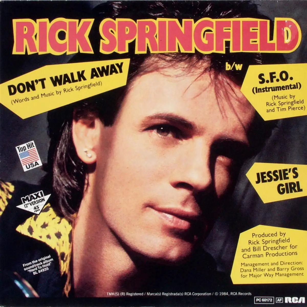 12" Maxi Rick Springfield - Don't Walk Away, Zustand Platte VG+ Hülle VG+; Made in Germany 1984 RCA PC 60172, Tracks 4:00, Jessie's Girl 3:14, S.F.O. [Instr.] 2:21