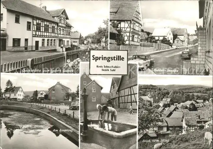 Springstille Gaststaette gute Quelle Suhler Str Am Gespring Brunnen Stiegblick Springstille postalisch gelaufen nach 1965 Erhaltung siehe scans Alte Ansichtskarte Postkarte hz Woerer