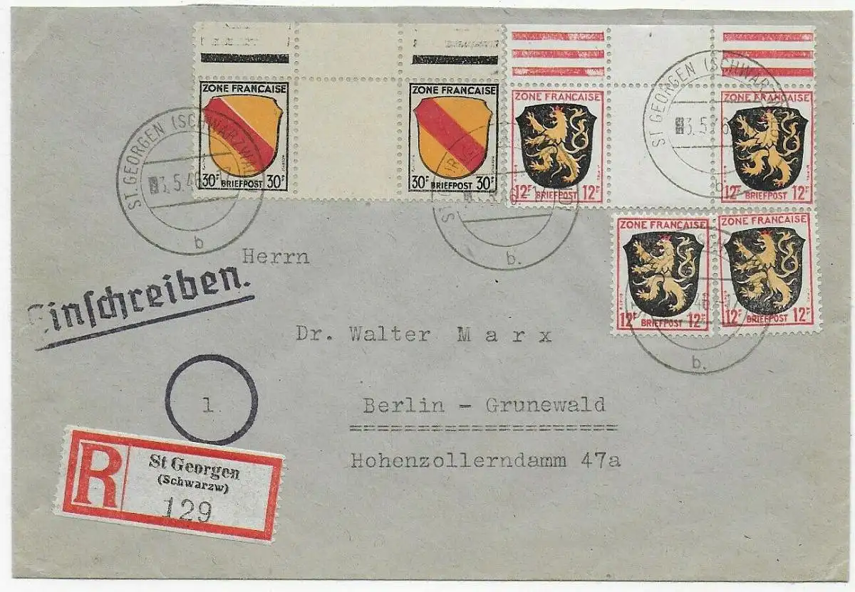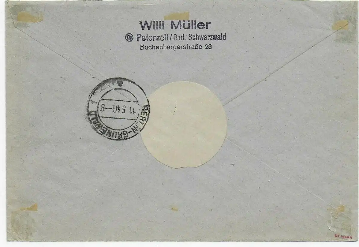 St. Georgen/Schwarzwald, Einschreiben nach Berlin, 1946