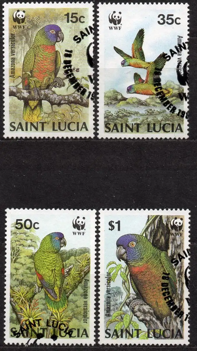 St. Lucia, Mi-Nr. 909 - 912 gest., kompl., Papageien - WWF