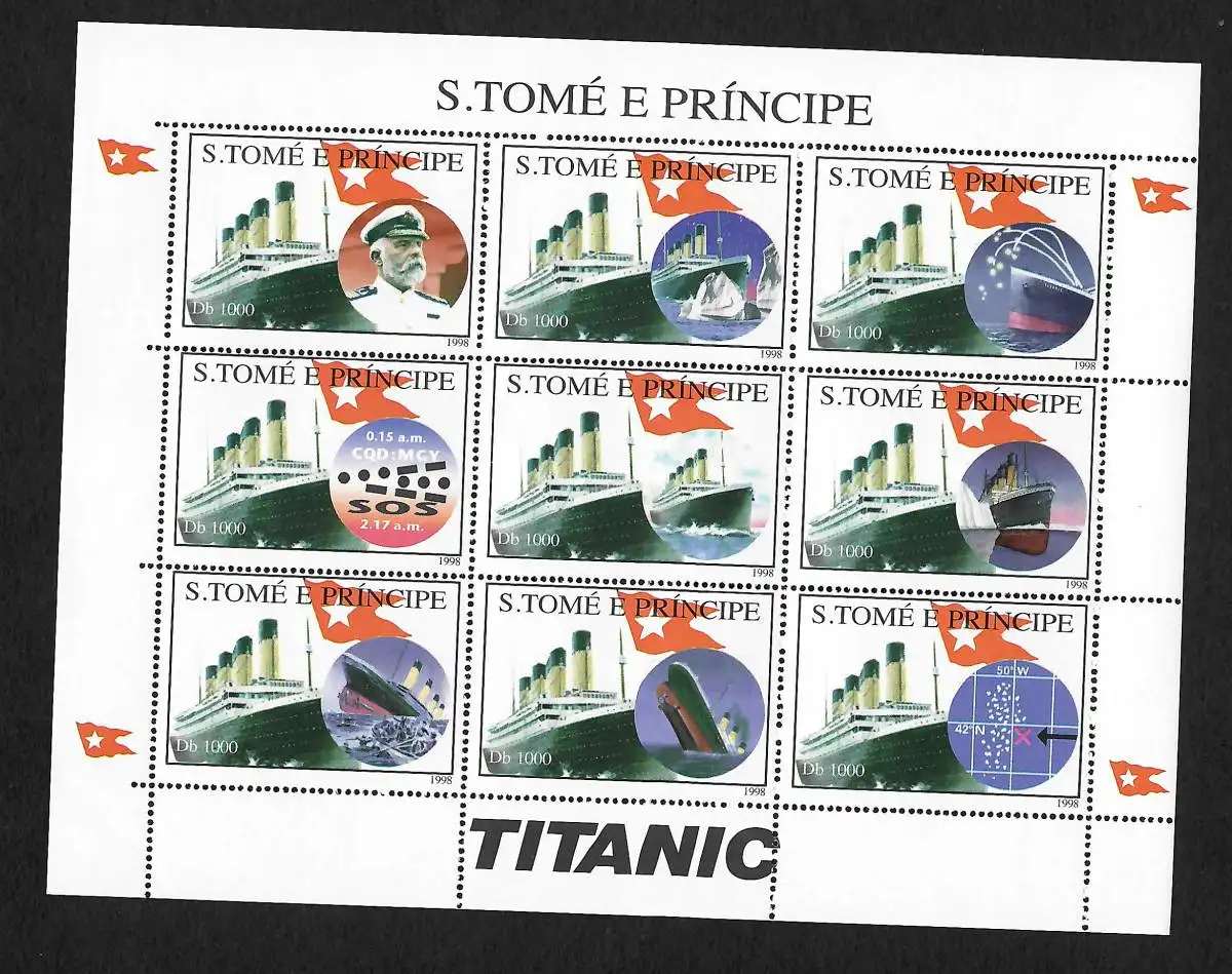 St. Thomas und Prinzessinseln: Titanic, Eisberg, SOS, 9x different stamps **