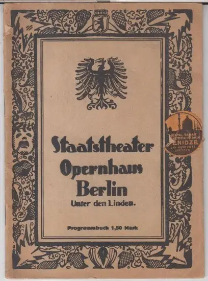 21,5 x 15,5 cm. Originales Programmheft, der Einband mit kleinen Randbeschädigungen und gebräunt. 31 (1) Seiten mit zahlreichen s/w Portät- und Szenenfotos, u. a. Barbara Kemp, Carl Braun, Helene Wildbrunn, Josef Mann, Elisabeth van Endert, Joseph Schwarz, Emil Lücke, Grete Mancke, sowie einem Doppelblatt Besetzungsliste und vielen Anzeigen . Insgesamt sauber und in gutem Zustand