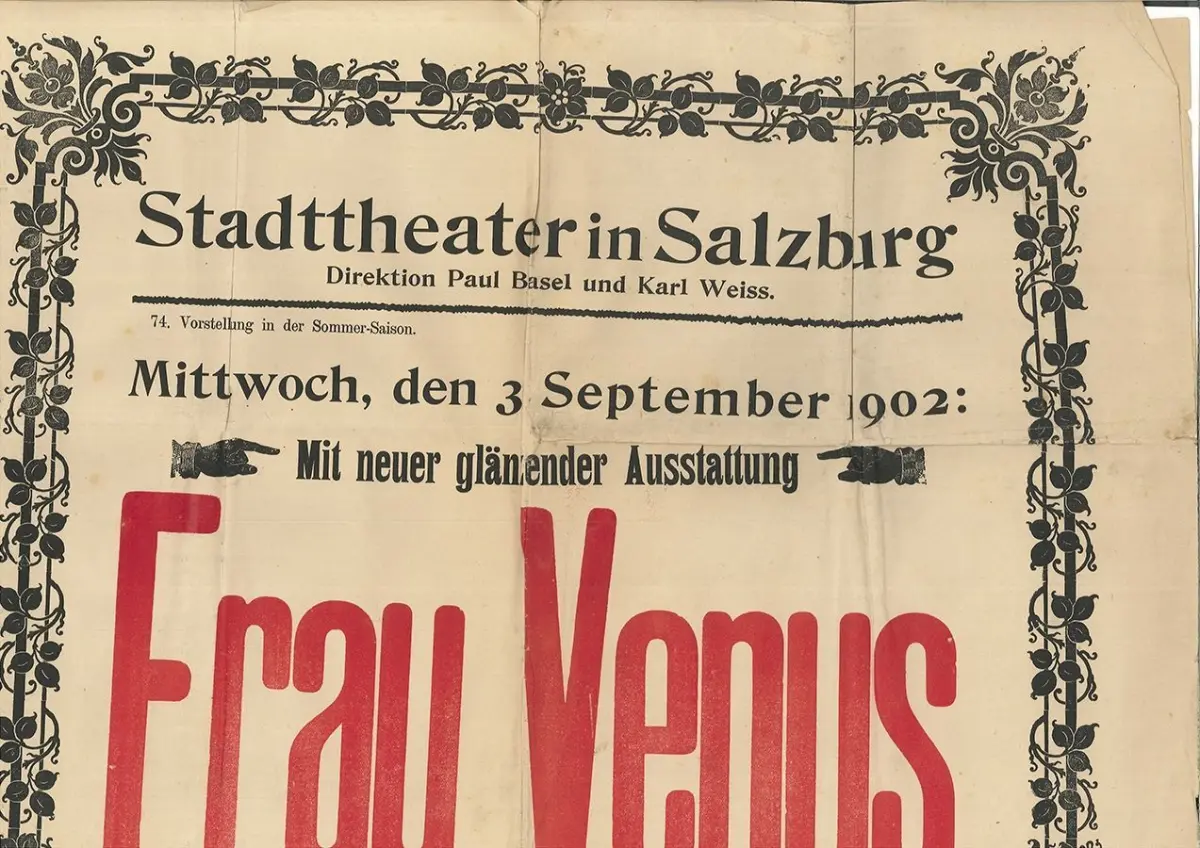 Bemerkungen: Theaterplakat des Stadtheaters in Salzburg anlässlich der Aufführung des Stückes "Frau Venus" von Ernst Pasqué (1821-1892) und Oskar Blumenthal (1852-1917).