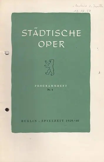 Städtische Oper Berlin. - Intendant Ebert, Carl. - Gioacchino Rossini. - Cesare Sterbini nach Beaumarchais: Programmheft Nr. 4. Spielzeit 1959 / 1960. Mit Besetzungsliste zu: Der Barbier von Sevilla. Musikalische Leitung: Martin Mälzer / Inszenierung: L