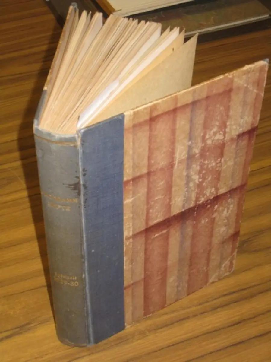 Freie Beschreibung: 8°. Blauer Halbleinenband der Zeit mit goldgeprägtem Rückentitel und farbigen Bezugspapieren. Etwas berieben. Komplett mit den Heften 1 - 15 mit je 24-28 unpaginierten Seiten (incl. Umschlag, Abbildungen, Werbung und Annoncen sowie Besetzungszettel). Die Umschläge farbig und typographisch sehr ansprechend gestaltet, unten und seitlich leicht beschnitten. Jedes Heft mit Schauspielerporträts, Bühnenbildern und / oder Figurinen etc. Richtig gut erhalten