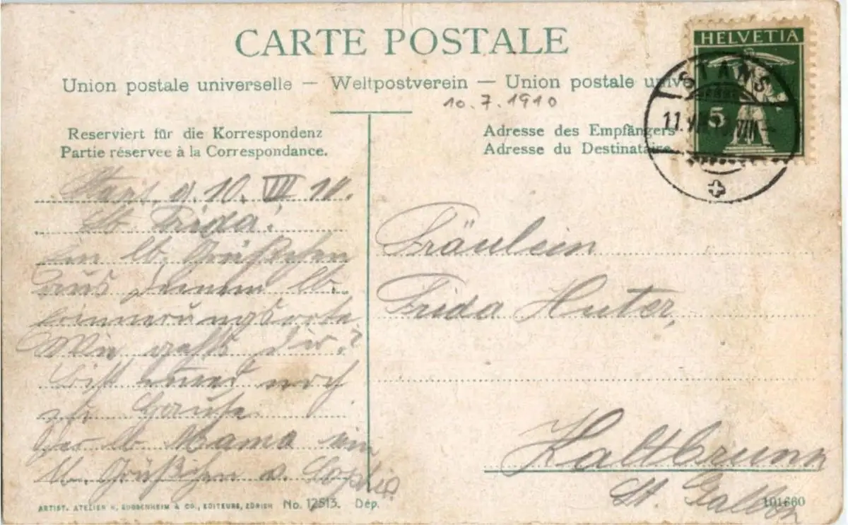 Danke. Alles Bestens. Können Sie mir allenfalls mitteilen, aus welchem Jahr die Postkarte stammt? Besten Dank.