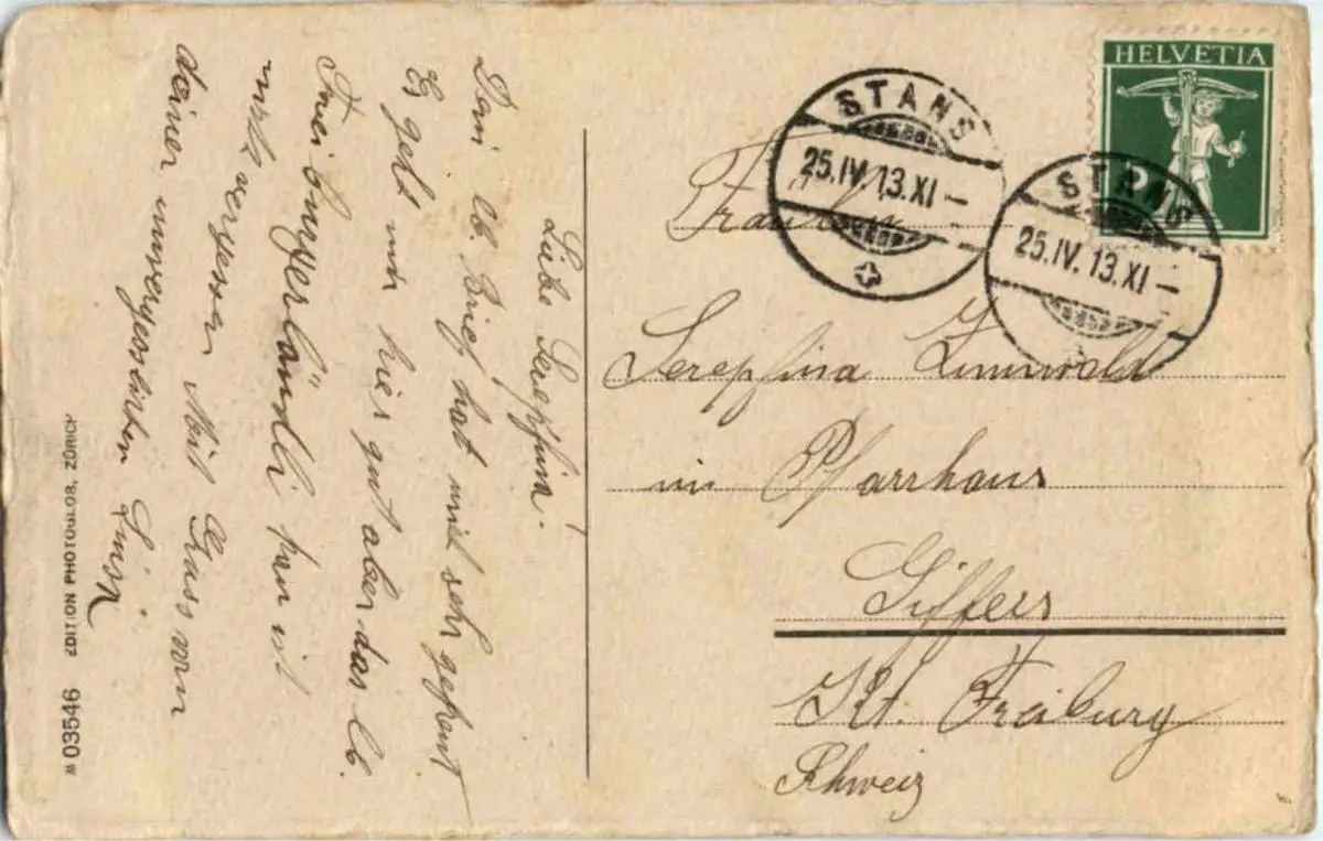 Danke. Alles Bestens. Können Sie mir allenfalls mitteilen, aus welchem Jahr die Postkarte stammt? Besten Dank.