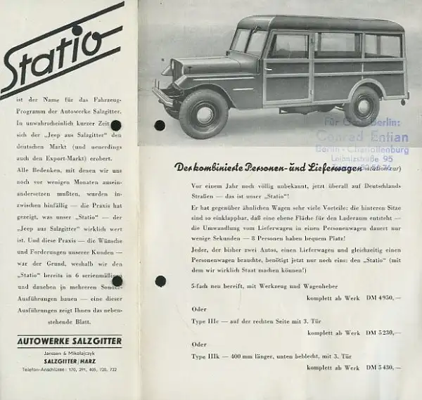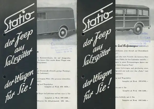 Statio Jeep / Salzgitter 4 Prospekte ca. 1950