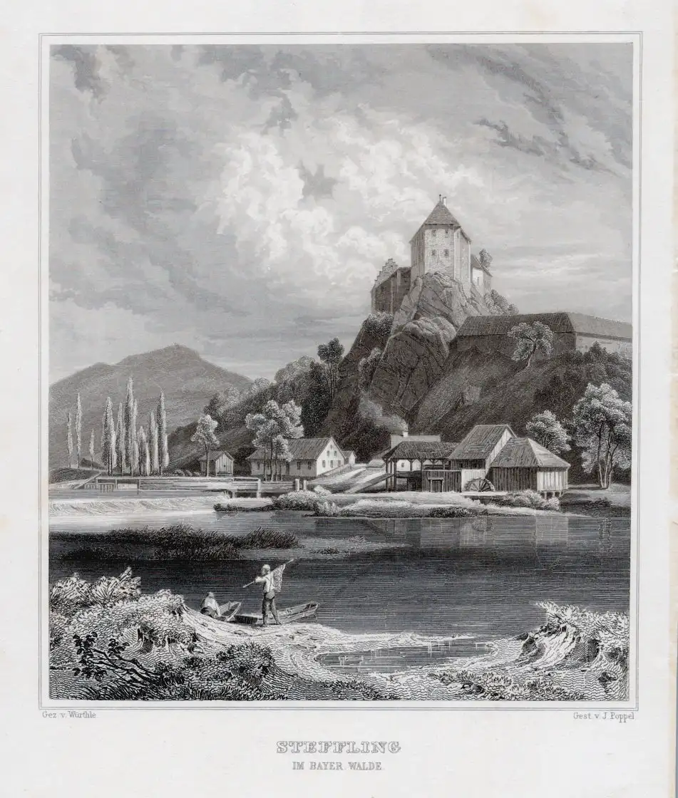 Steffling b. Nittenau. Originaler Stahlstich Poppel um 1850