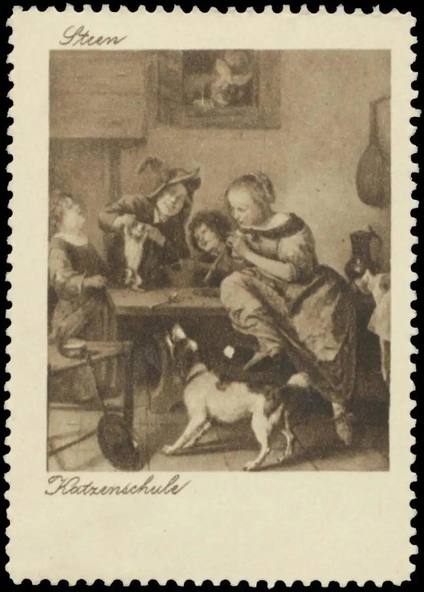 Katze, Hund, Gemälde, Größe/Zustand: 6x4 , guter Zustand, Original alte Reklamemarke die seinerzeit für die Werbung benutzt wurde