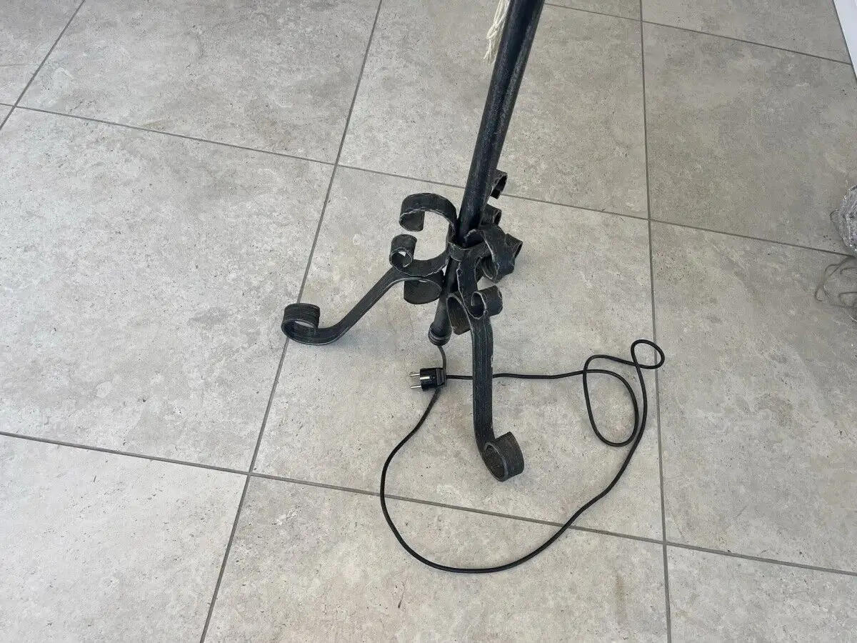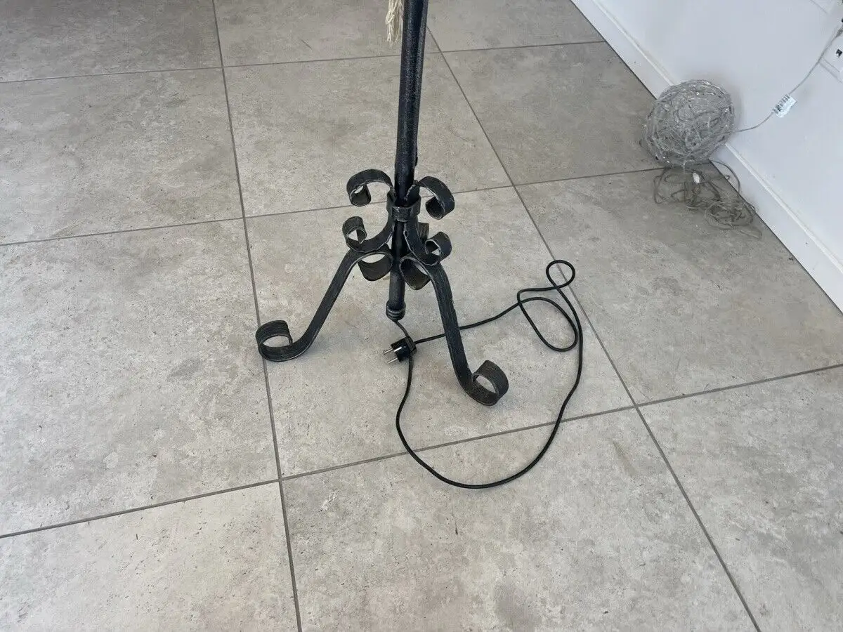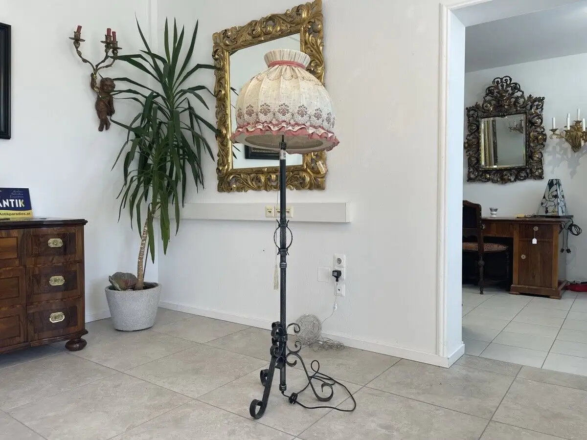 Bezaubernd gefertigter provinzieller Stanleuchte Standlampe Schmiedeeisen mit Stoffschirm